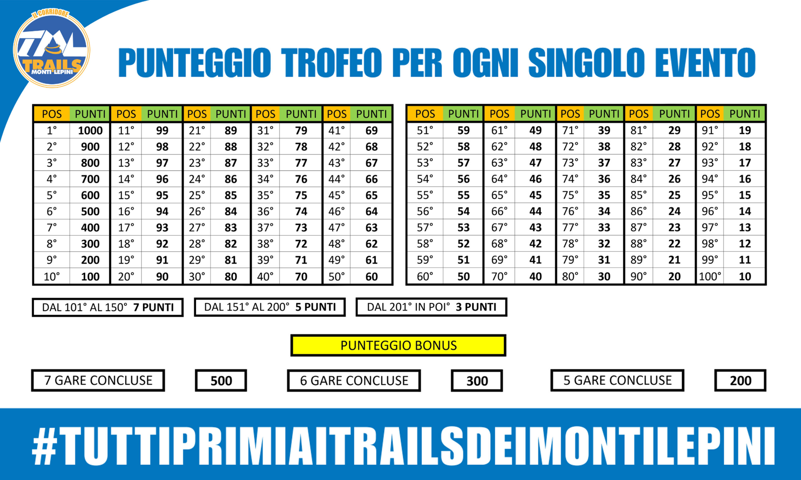 PREMIAZIONE PER I PRIMI 10 UOMINI E 10 DONNE